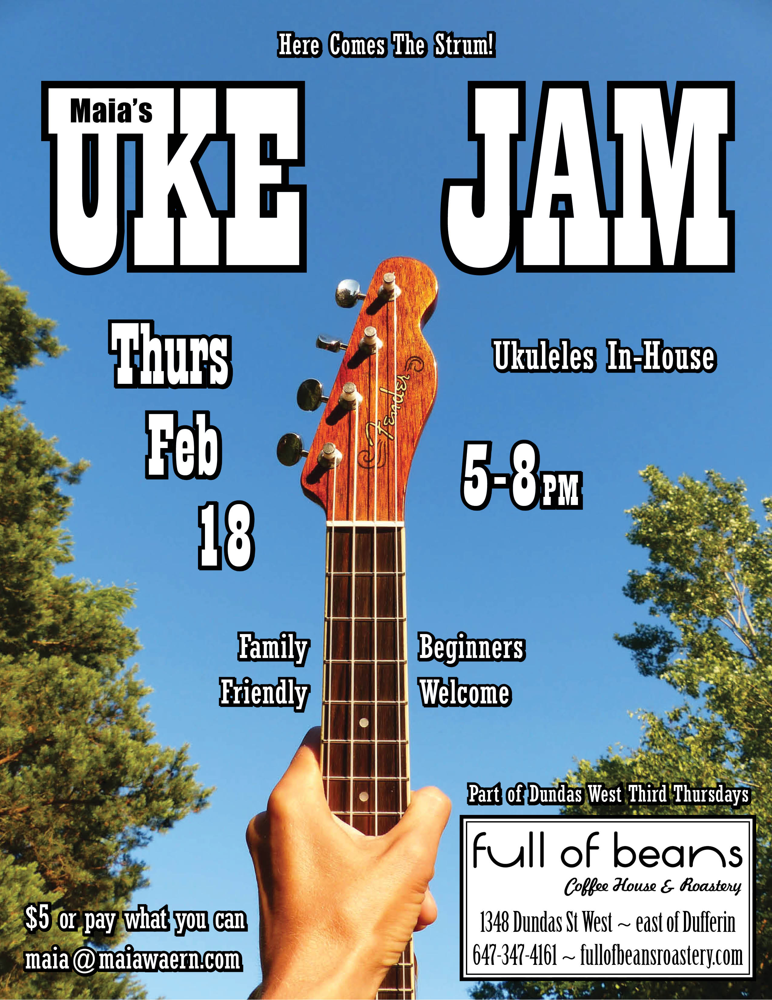 On the third Thursday of the month Ukuleles and comfy chairs in-house $5 or pay what you can ~ smiles accepted! See uke soon!